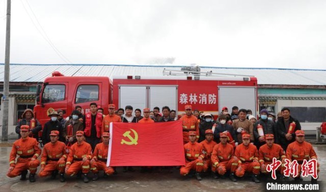 林芝市森林消防支队巴宜区中队消防救援人员与地方民众合影留念。 西绕拉翁 摄
