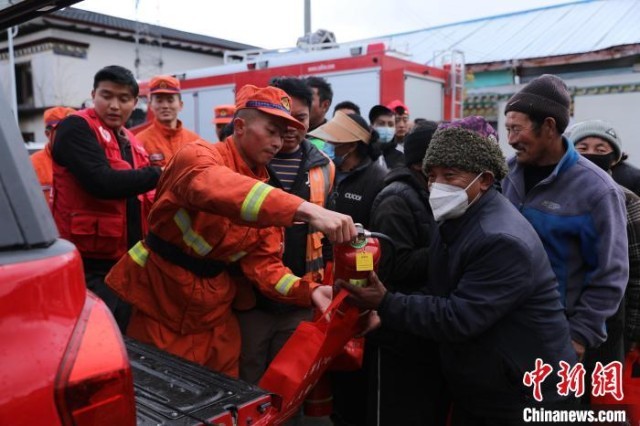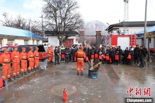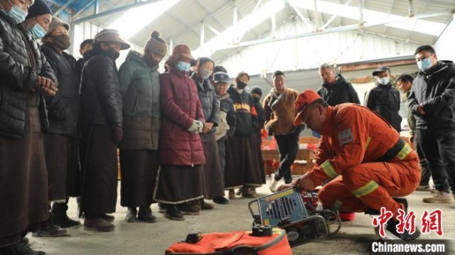 中新网拉萨2月14日电 (西绕拉翁 袁勇彬)“这个装备叫什么名字?这个家伙上山打火好使吗?”面对眼前“新奇”的装备,扑火队员们个个都是“打破砂锅问到底”。“这个是super325水泵,相比Flypark水泵体积小、重量轻、便于上山携带,而且工作时间长,是我们扑救森林火灾完成各项救援任务的重要“武器”。二级消防士洛桑顿珠面对民众的提问知无不言。以上是林芝市森林消防支队巴宜区中队消防救援人员在为地方护林员讲解灭火装备性能及灭火装备操作方法。