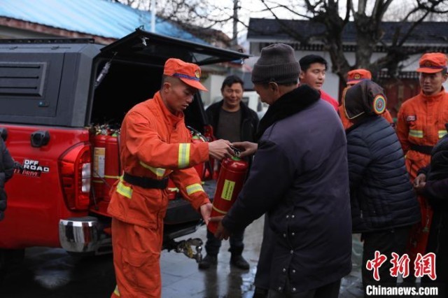 该中队为每家每户配发干粉灭火器。 西绕拉翁 摄