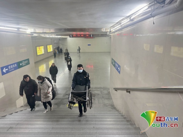 春运期间,陈鑫用一把轮椅守护着重点旅客的出行路,用实际行动诠释着新时代铁路青年的精神。(记者 李婧怡 通讯员 何亮)