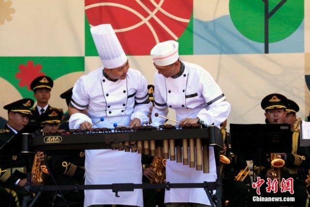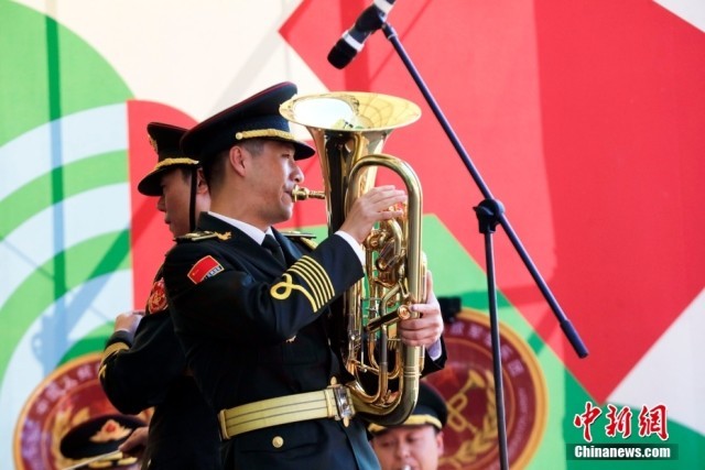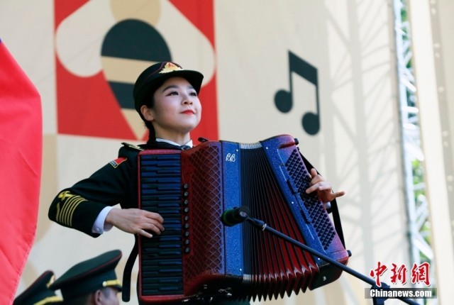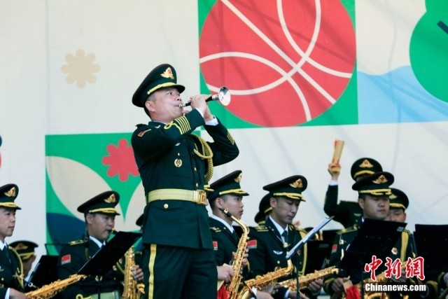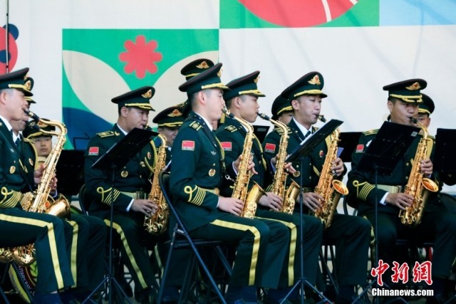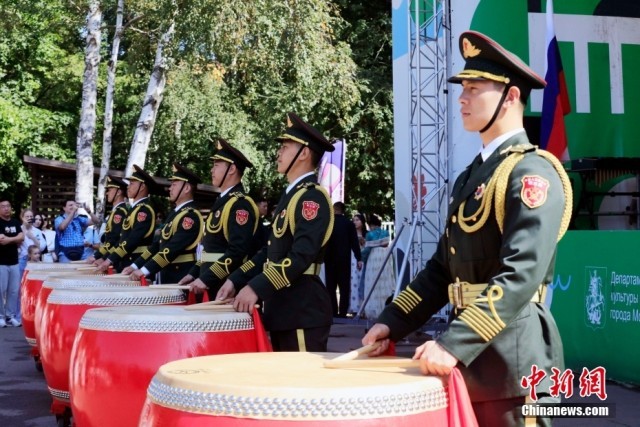 当地时间8月25日,俄罗斯首都莫斯科库兹明基公园,中国人民解放军仪仗司礼大队军乐团为当地民众和旅俄华侨华人举行专场音乐会。中俄建交75周年之际,应俄罗斯“斯帕斯钟楼”国际军乐节组委会邀请,中国人民解放军仪仗司礼大队军乐团于8月23日至9月1日,参加第16届“斯帕斯钟楼”国际军乐节。