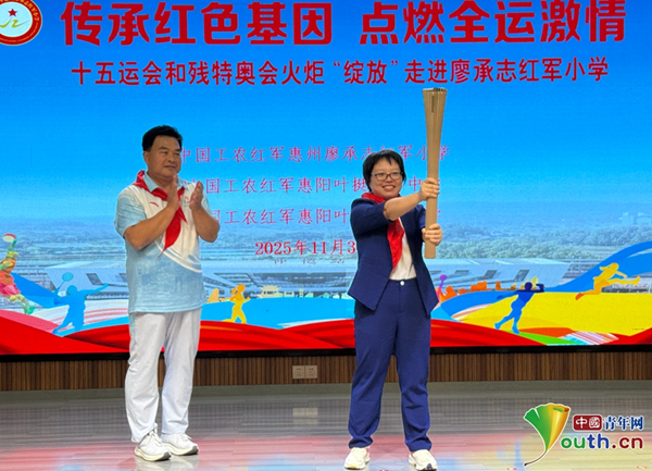 十五运会与残特奥会火炬“绽放”走进惠州廖承志红军小学。
