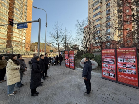 奥运村街道为调研人员讲解拥军示范点情况。北京市朝阳区退役军人事务局 供图