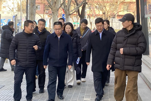 事务部调研组一行实地调研三里屯拥军示范街。北京市退役军人事务局供图
