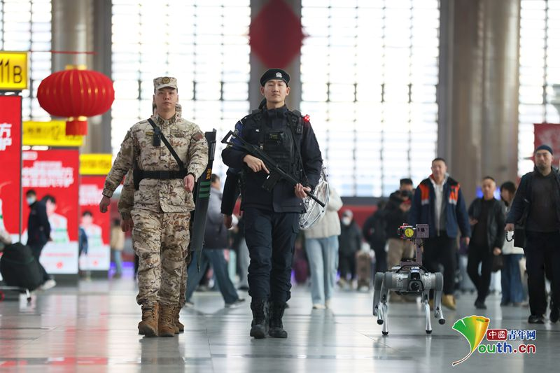 北京铁路公安还以“科技兴警”为抓手,将智慧警务深度融入春运安保各环节。“一键报警”装置与综合指挥室实时互联,旅客遇有紧急情况可快速求助;智能警务机器人、机器狗同步上岗,24小时不间断智能巡防;高空瞭望台扩大巡防覆盖面,让安保盲区无所遁形;视频巡控、数据研判,精准掌握到达客流峰值与流向,科学划定疏导区域、优化通行流线,引导旅客快速分流、平安离站。