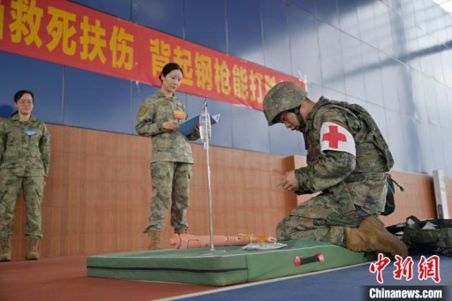 战伤救护考核。陈法朗 摄