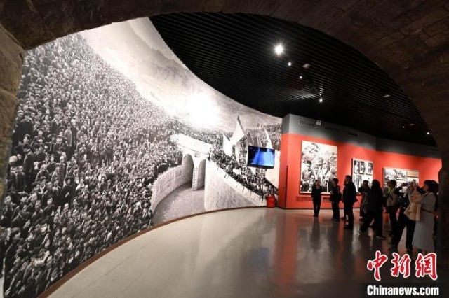 图为采访团一行在红旗渠纪念馆参访。中新网记者张金川 摄